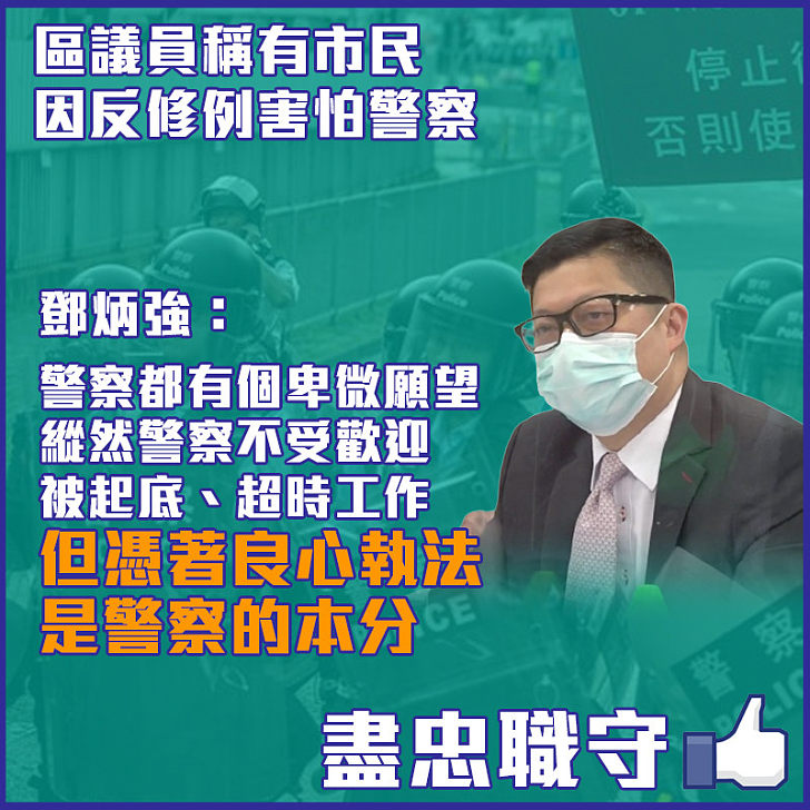 【今日網圖】區議員稱有市民因反修例害怕警察鄧炳強:憑良心執法是警察本分 - 港人講地